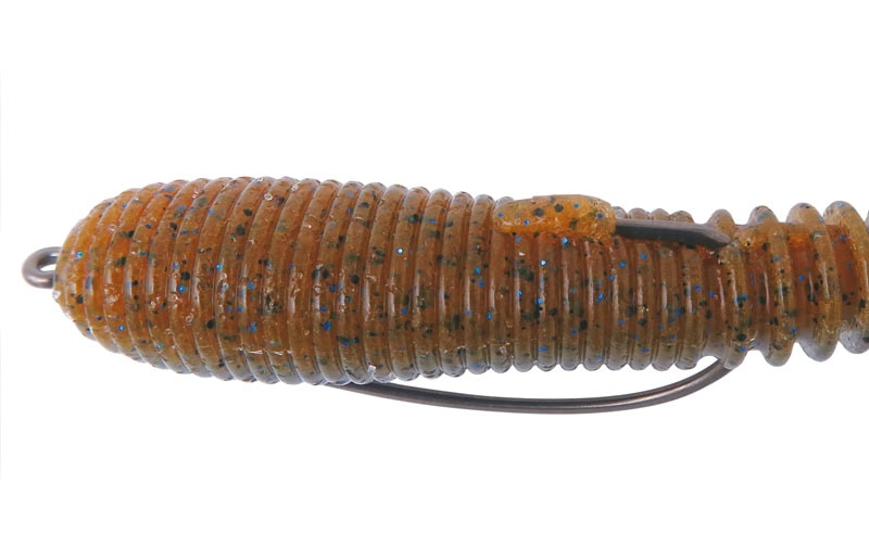 Trotz seiner kompakten 3,6 Zoll Länge und einem Eigengewicht von über 8g liefert dieser Fat Stickbait eine ausgeprägte Wobbling- und Winding-Action, und zwar nicht nur als No-Sinker, sondern auch in zahlreichen anderen Rigs. Dabei erzeugt er einen spürbaren Wasserwiderstand, der den Instinkt der Barsche triggert, während seine kompakte Form selbst unter toughen Bedingungen zuverlässig abliefert.