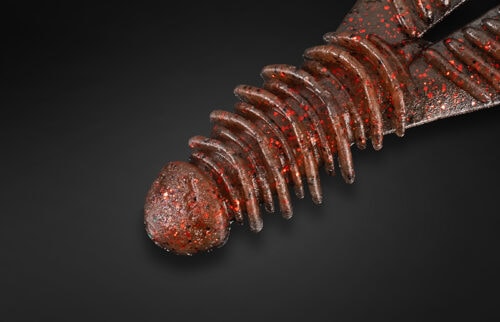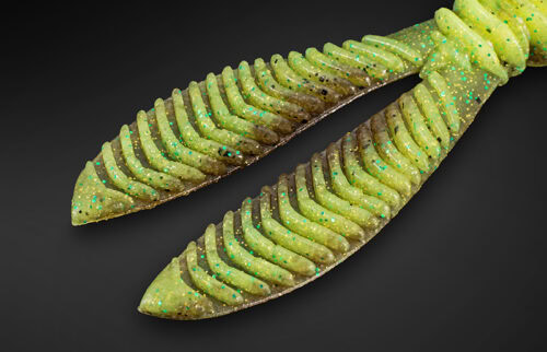 Die Rippen des „Jackall Ribbing Bunny 3,8″“ vermitteln ein Gefühl von Präsenz und Vitalität. Die in den gesamten Körper eingearbeiteten Rippen greifen das Wasser, bewegen es kraftvoll und machen ihre Anwesenheit deutlich. Die Rippen an der Unterseite des Schwanzes fangen selbst die kleinste Wasserströmung ein. Der Körper des Ribbing Bunnys ist strukturiert und hat eine matte Oberfläche, sodass er in Situationen, in denen man ihn im gefärbten Wasser verwenden möchte, definitiv auffällt.