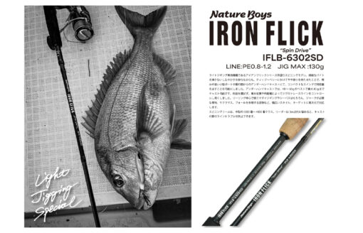 Die „Nature Boys Iron Flick Spin Drive“ ist ein speziell für Light-Jigging entwickelte Rute und ist nun in einer begehrten Spinning-Variante erhältlich. Sie bietet eine Flexibilität, die empfindliche Bisse nicht abweist, und verfügt gleichzeitig über eine leichte Steifigkeit im Tip- bis Belly-Bereich. Dadurch ist es möglich, mit einem kompakten Schwung bei niedrigem Tiefgang kleiner Boote oder beim Unterhandwurf vom Rumpf aus weite Würfe zu erzielen.