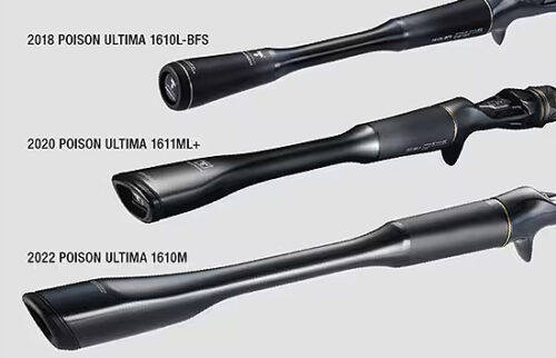 Die „Shimano Poison Ultima“ ist das Flaggschiff der Poison-Serie, dass eine Weiterentwicklung erfahren hat. Mit den besten verfügbaren Technologien zu dieser Zeit setzt die Spitze der Poison-Serie weiterhin die ultimative Herausforderung in der Bass-Szene fort. Für das Spinning-Modell, das nach ultimativer Leichtigkeit strebt, wurde kühn eine Griffstruktur mit Blankdesign verwendet, während für das Baitcast-Modell ein neues Design mit Vollcarbon-Monocoque-Griff gewählt wurde. Die Oberflächengestaltung erhöht die Kontaktfläche mit der Handfläche und überträgt die Kraft beim Wurf linear. Darüber hinaus verbessern die Positionierung des Triggergriffs am hinteren Griff die Stabilität während der Bedienung und die Griffigkeit beim Wurf. Die Fusion von „Spiral X Core“, „High Power X Double X Structure“ und „NEW UBD“ (Ultimate Blanks Design). Die angestrebte „wahre Leichtigkeit“ wird weiter vertieft und sowohl die Bedienbarkeit als auch die Empfindlichkeit wurden weiter verbessert.