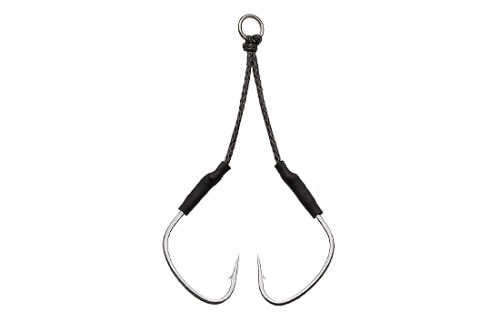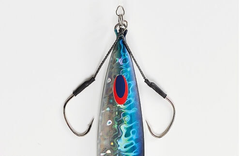 Mit einer etwas längeren Hilfslinie ist der „Decoy Twin Falx DJ-66“ speziell für das Jiggen in mittlerer Tiefe und Tiefsee konzipiert und eignet sich hervorragend zum Fangen von Premiumfischen wie Red Snapper. Um große Jigs mit einem Gewicht von weit über 300 g effektiv, langsam und präzise zu führen, kommt der Haken „AS-06 FALX“ zum Einsatz. Er ist so konzipiert, dass es die notwendigen Eigenschaften besitzt, nämlich leicht und geschmeidig zu sein und dennoch eine hervorragende Durchdringungskraft zu bieten. Durch die Verwendung eines dünnen Schaftdrahtes, der die Festigkeit beibehält, die mit herkömmlichen Jigging-Haken bisher unerreichbar war, und durch den Einsatz der innovativen Dual Forged-Technologie ist der AS-06 FALX-Haken bis in das kleinste Detail gefertigt. Die Innenseite des Hakens ist abgeflacht, wodurch das Risiko verringert wird, dass Fische aufgrund eines Lippenrisses entkommen. Er kann sowohl an der Vorder- als auch an der Rückseite des Jigs befestigt werden, um das Maul und den Körper des Fisches effizient einzuhaken.