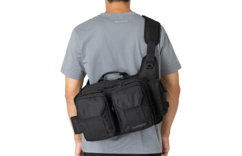 Die „Shimano Tough Shoulder“ ist ausgestattet mit 7 Taschen und Halterungen.